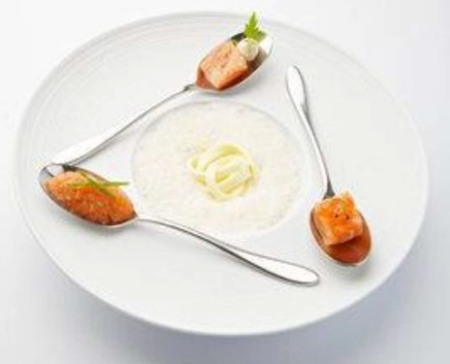 Zalmtartaar: maak een quenelle en leg op een lepel
