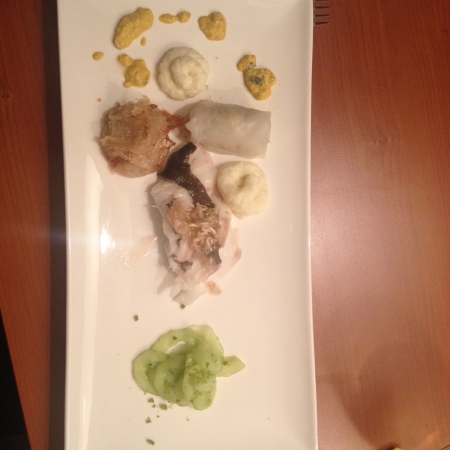 De pakjes noordzeecrab: De ene helft hebben we zonder verdere bereiding geserveerd de andere hebben we gefrituurd. (er staat hierover niets het het menu). Deze combi was prima en zeker aan te bevelen.