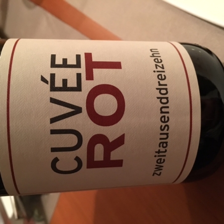 Wijn spijs: Cuvee Rot, Rheinhessen Duitsland 2013 Saint Laurent, Spätburgunder en Dornfelder. Wijn spijs uitstekend