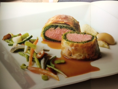 Verdeel de bonenpuree, shitakes en de groenten over de borden. Snijd de uiteinden van de eraf en snijd de filets in 20 medaillons. Leg op ieder bord 2 medaillons. Giet de saus rondom het vlees.