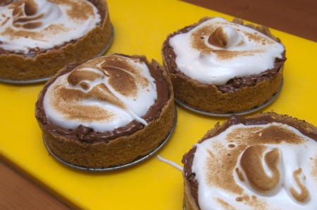 De harde werner bakjes voorzien van een bescheiden laag chocolade mousse.