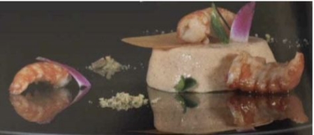 Week de gelatine en breng ondertussen de rivierkreeftenfond bijna aan de kook, voeg de gelatine toe. Sla de eidooier luchtig en voeg een klein beetje van de fond aan de eidooier toe en doe vervolgens weer terug in de pan. Verwarm hem met een spatel tot 83 C en giet hem dan door een haarzeef in een bekken en laat afkoelen.