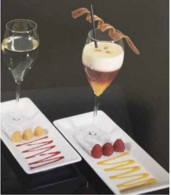 Week voor de gelei de gelatine 5 min in koud water. Verwarm de champagne en de Sechuan buttons, laat dit even trekken en los daarna de geweekte gelatine op.